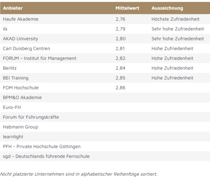 Das FORUM Institut erhielt die Auszeichnung 'Hohe Zufriedenheit'.