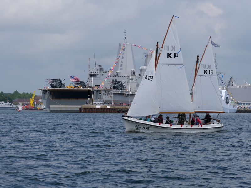 Am Nachmittag standen dann gleich drei Wettfahrten bei schönstem Segelwetter an. Zeitgleich fand auf dem Stützpunkt die Veranstaltung “Open Ship” zur Kieler Woche statt. Alle Schiffe (allein 40 Schiffe aus anderen Staaten) konnten besichtigt werden - auch die Gorch Fock. Toll waren auch die Vorführungen der Marine, insbesondere der Einsatz des SAR-Hubschraubers.