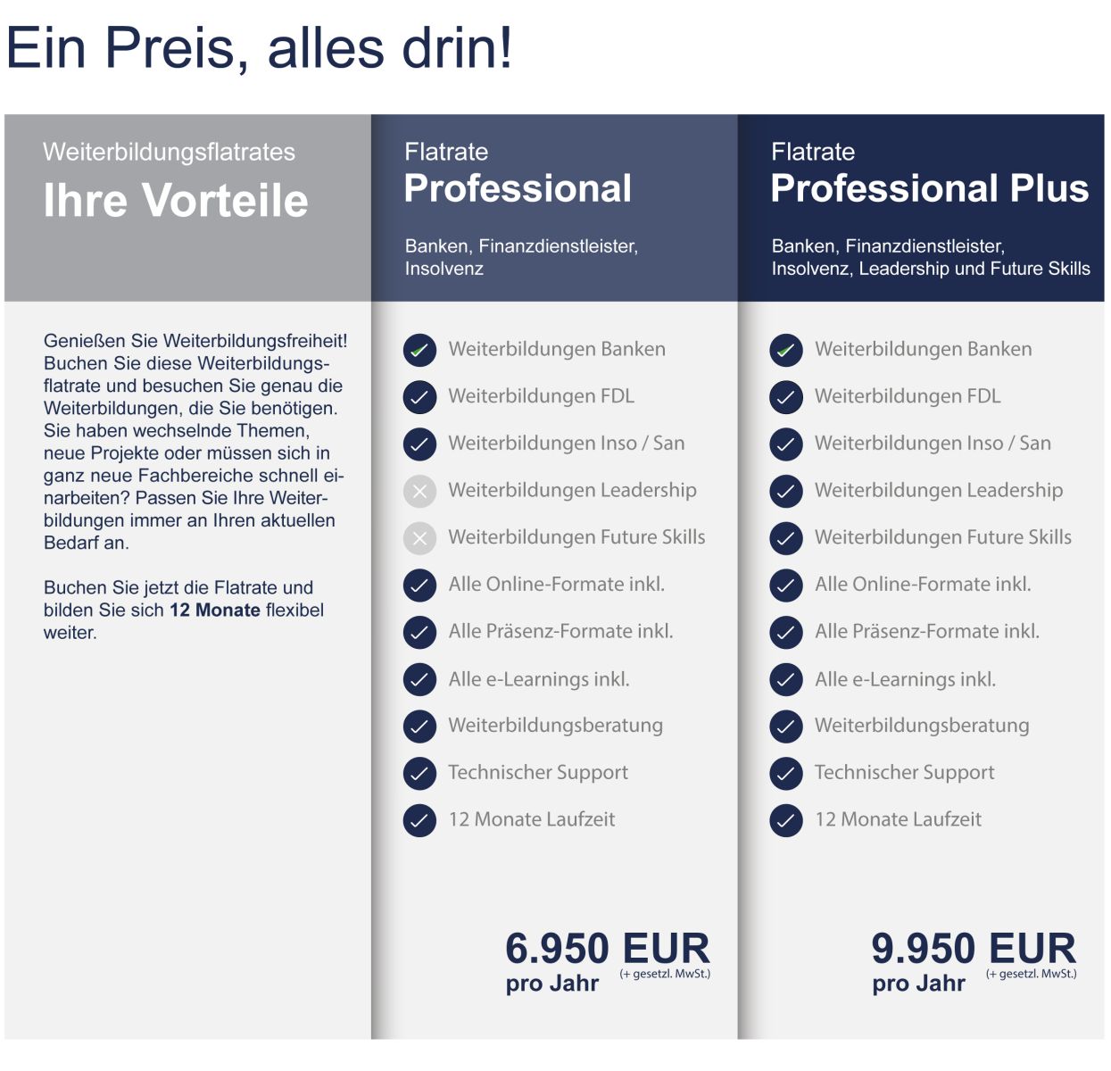 Sie wollen keine punktuelle Weiterbildung, sondern kontinuierlich auf dem aktuellsten Stand bleiben? Dann gibt Ihnen diese Flatrate die Freiheit, die Sie benötigen - ohne versteckte Kosten und finanziell fest planbar.